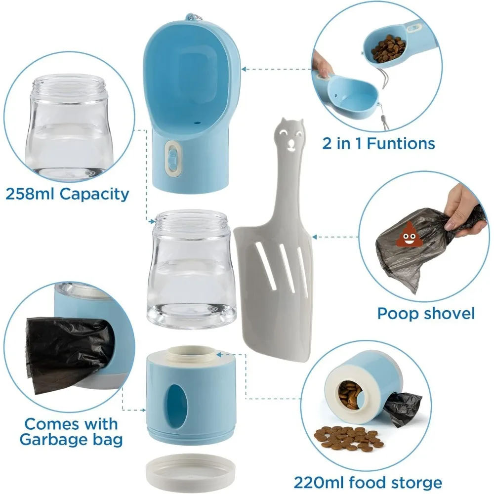 Carrying separate items for water, food, and cleanup can be messy and inconvenient — especially during outdoor trips or walks.